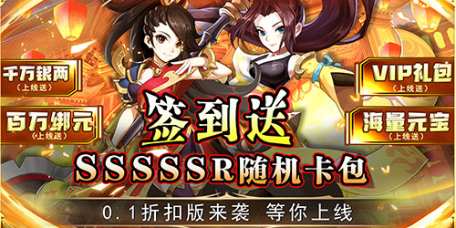 礼包内容:高级技能洗练石*20、藏宝图*30、SSSSSR随机卡包*1