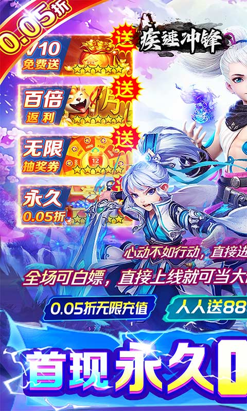 这是一款以九州世界为题材的放置挂机游戏,游戏内所有充值档位通通0.05折,轻轻松松霸服当大佬。全新版本开局就送V10+88888元宝,签到送元宝,激活月卡还能双倍领取,登陆送无限装备抽奖,0元礼包海量送,百倍返利爽翻天!游戏中还有多种玩法,经典的副本玩法,挑战成功道具领到手软!挑战首领,各路仙侠万人同台竞技!加入帮派与至交好友一览仙侠,战斗路上不再孤单!